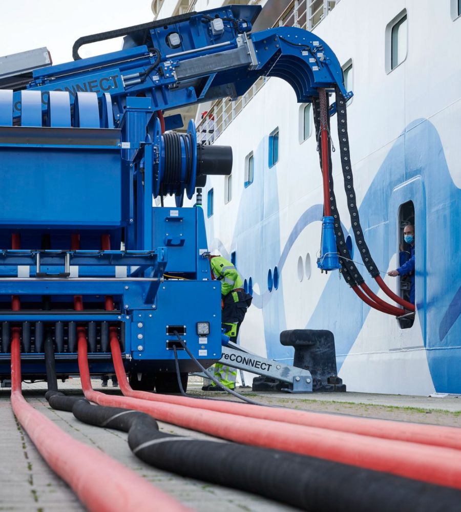 Do combustível fóssil à energia limpa. Oferecemos soluções como o sistema Shorepower, que reduz emissões ao conectar navios à rede elétrica enquanto atracados, eliminando o uso de geradores a diesel.